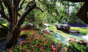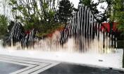 沿著枯溪青磚道路,進(jìn)入四進(jìn)庭院, “景”和“情”追求情景交融的最高境界,白沙黛瓦與假山跌水相接,共繹曲折有致、脈脈源流的別樣景象;雖由人作,宛自天開(kāi),在裊裊霧噴映襯下,猶如仙山仙境,形成多重意境空間的遞進(jìn)效果。