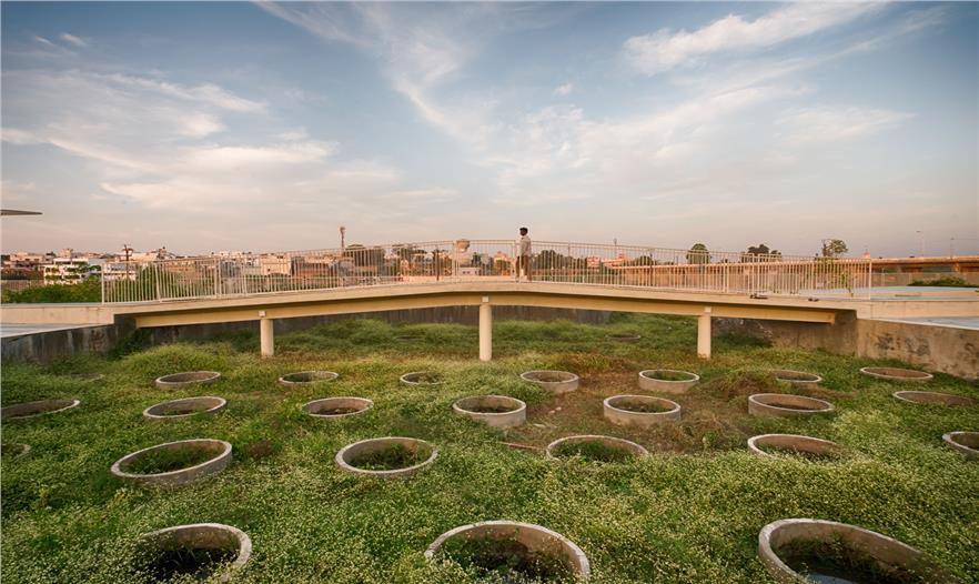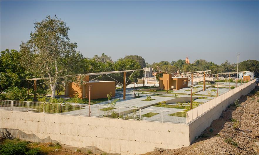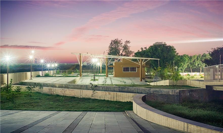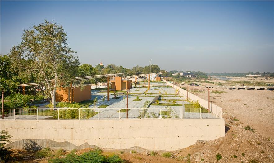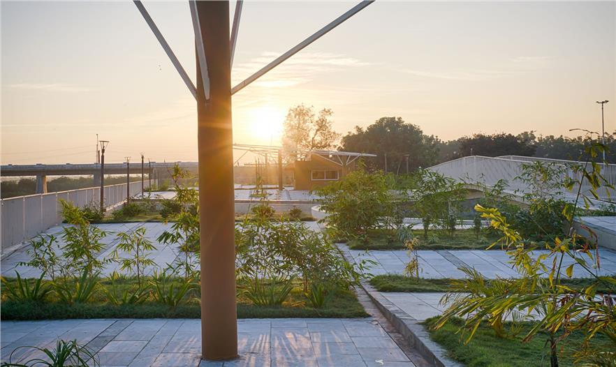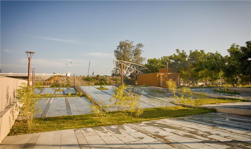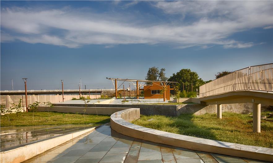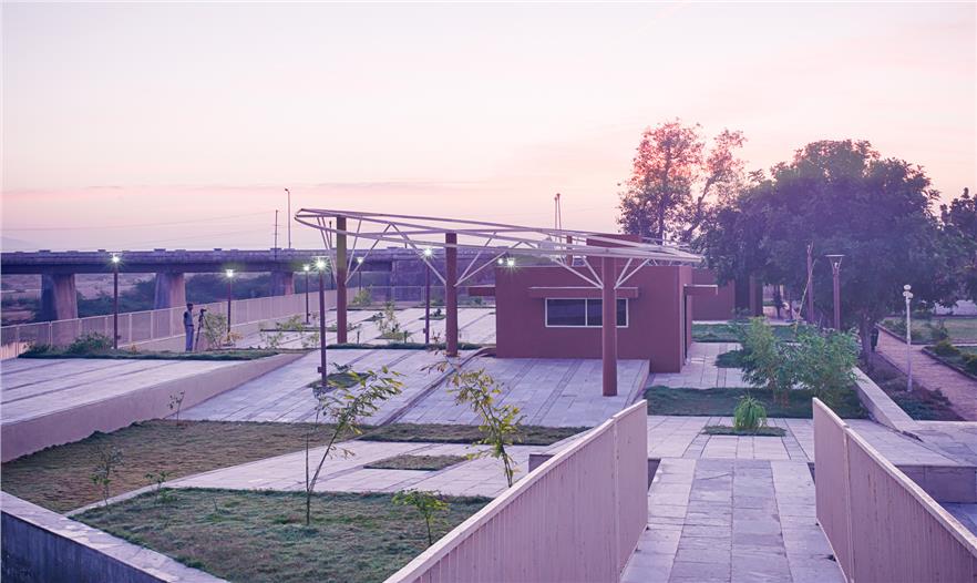 該項目成功地在預(yù)算和預(yù)定時間內(nèi)完成。凱德布拉赫馬是印度古吉拉特邦區(qū)薩巴坎塔縣的一個小鎮(zhèn)。三條小河流在這里交匯,當?shù)厝藢⒃摻粎R點稱為 Harnav。凱德布拉赫馬地區(qū)的市政部門決定沿著 Harnav 河畔為小鎮(zhèn)建一座公園。這座公園選址本作為垃圾場使用。這個公園將被打造成一個供人們休息,享受和放松的公共娛樂空間。Harnav 河并不是常流河,只有在雨季才能欣賞到河流的美景。該設(shè)計著重于打造一個公共休閑環(huán)境,能夠充滿多樣性和連續(xù)性,建立季節(jié)性河流和周圍環(huán)境的多層聯(lián)系。步行道與河岸平行,人們可以在沿河岸散步時欣賞景色。這個步道的設(shè)計從河流的運動中汲取靈感,柔和地上下波動。