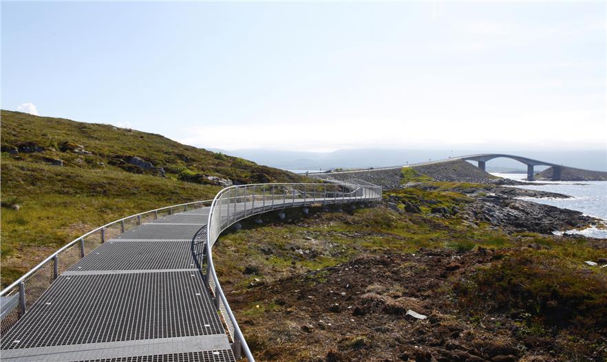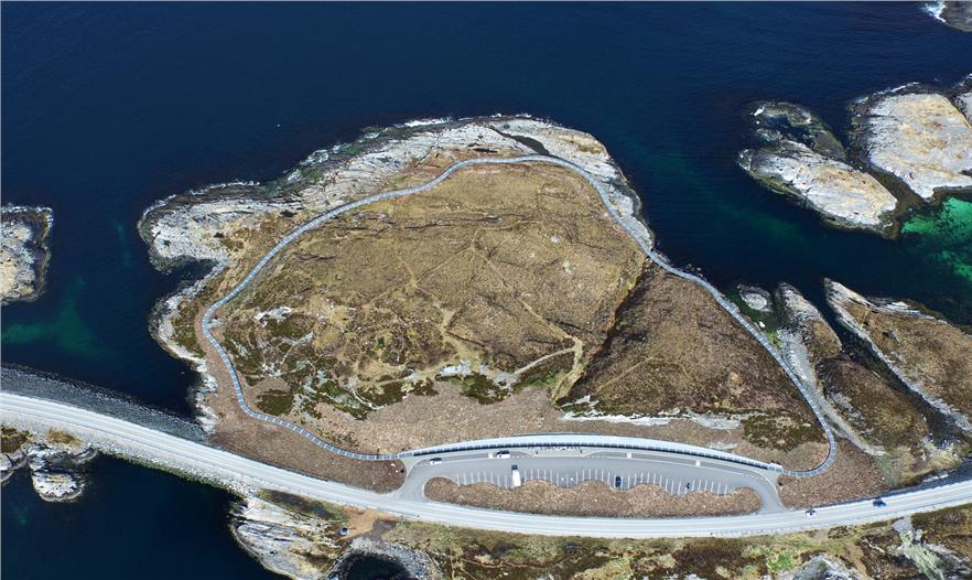 這個(gè)小島坐落在標(biāo)志性的大西洋海岸線上最著名的航線上,一直是眾多游客眼中的旅游勝地;它激動(dòng)人心的海洋景觀與臨近的曲線橋梁讓這里成為了反應(yīng)自然與人工之間關(guān)系的目的地。2007年挪威國家游客道路部門發(fā)起了一次建筑與景觀競(jìng)賽,該競(jìng)賽是關(guān)于升級(jí)場(chǎng)地,里面包括了一個(gè)景觀平臺(tái),一棟小型的服務(wù)建筑和一處大型的停車空間。