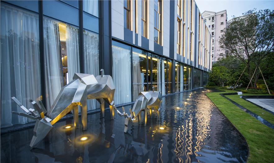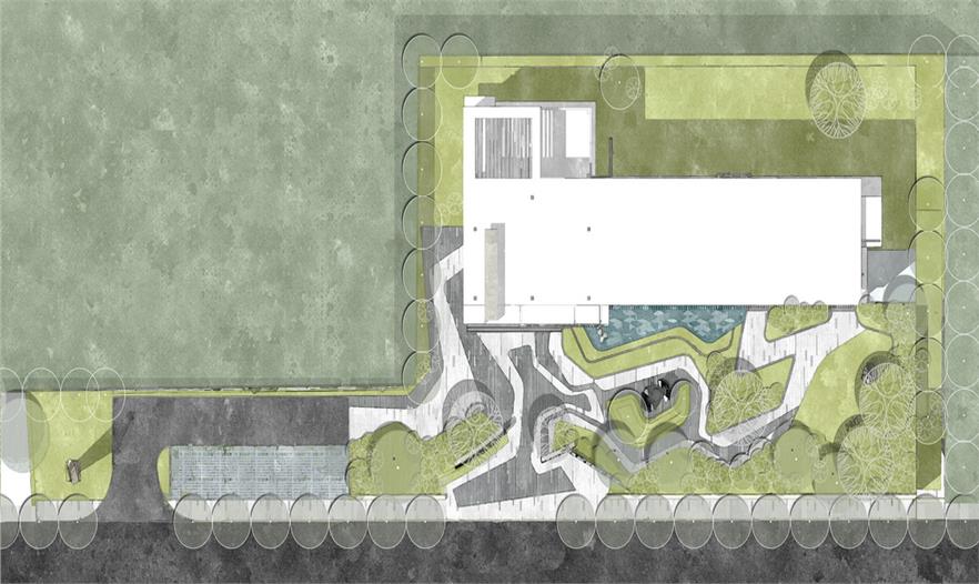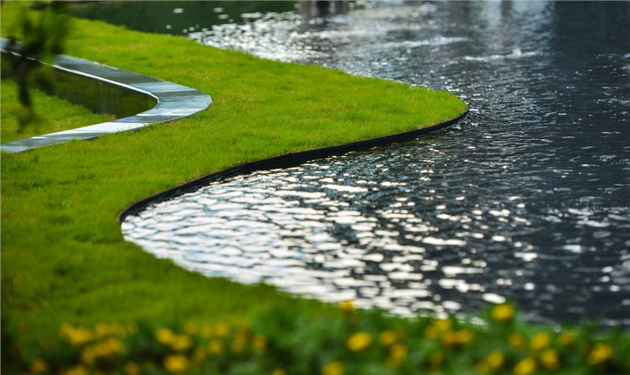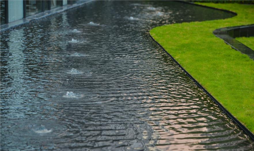 線性水景:在水景的設(shè)計上,設(shè)計師巧妙地在靜水面上設(shè)置了涌泉。涌泉流線型的布局排布再次與整體設(shè)計的線性概念相呼應(yīng)。并且,設(shè)計師細(xì)心地考慮到涌泉的大小、水量,精確計算。 靜水、動水、落水之間的不同變換,給人以生動跳躍的美感,達(dá)到豐富變幻的效果。