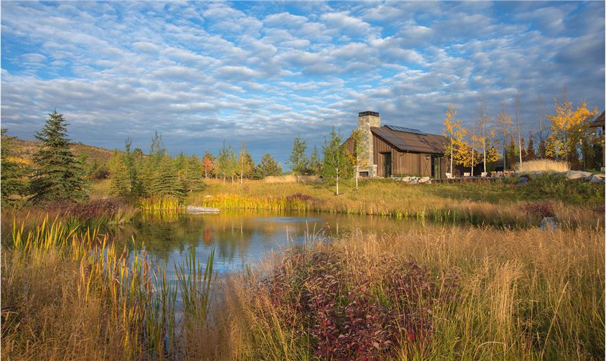該景觀反映出其高海拔環(huán)境,規(guī)劃敏感性和可持續(xù)發(fā)展策略,重建本土植物區(qū),增強(qiáng)野生動(dòng)植物棲息地。和杰克松再造林規(guī)劃一起,668平方米(7200平方英尺)之前被遺棄的景觀被修復(fù)成本土草甸。自然化的云杉和灌木與香蒲、莎草和其他水生植物材料一起點(diǎn)綴水池邊緣,冷卻水溫,在突出的植物陰影下建造出魚(yú)類棲息地。為了增加水池中分解的氧氣以及確保健康的水生環(huán)境,也建造了水處理系統(tǒng)如通氣、臭氧化和細(xì)菌注入。