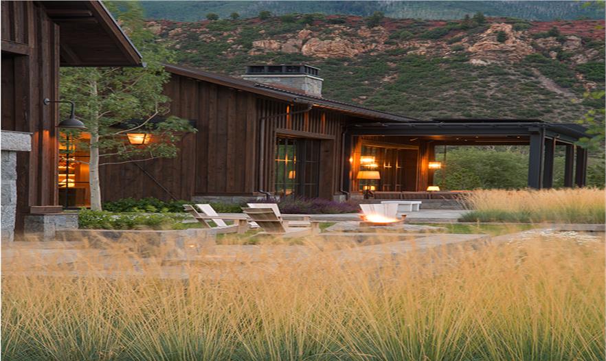 這個(gè)地產(chǎn)位于2377米(7800英尺)的高度上,盡覽東、西、南的全景,如農(nóng)耕田、地質(zhì)露頭、春池以及3962米(1.3萬(wàn)英尺)的山峰。強(qiáng)烈的日光照射、盛行風(fēng)、溫度波動(dòng)以及嚴(yán)寒的冬雪影響關(guān)鍵的設(shè)計(jì)決定,比如戶外設(shè)計(jì)、植物種類選擇以及特殊結(jié)構(gòu)的尺度。這個(gè)住宅從東向西延伸,橫跨整個(gè)區(qū)域,其主要的軸線能觀賞到南面的景色。第二個(gè)側(cè)翼建筑旋轉(zhuǎn)朝向東西部的景色。這個(gè)一層住宅低調(diào)、動(dòng)態(tài)、簡(jiǎn)潔,設(shè)置的落地窗戶和門讓室內(nèi)外空間無(wú)縫融合起來(lái)。