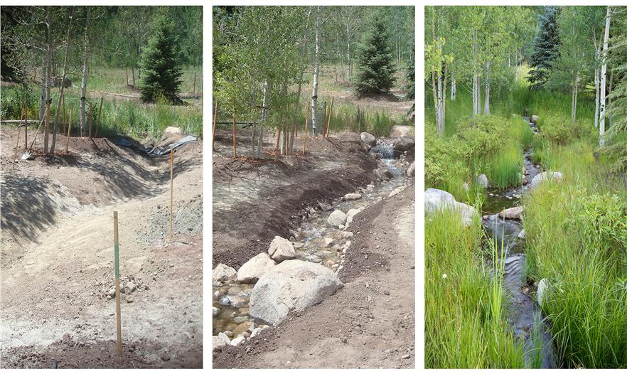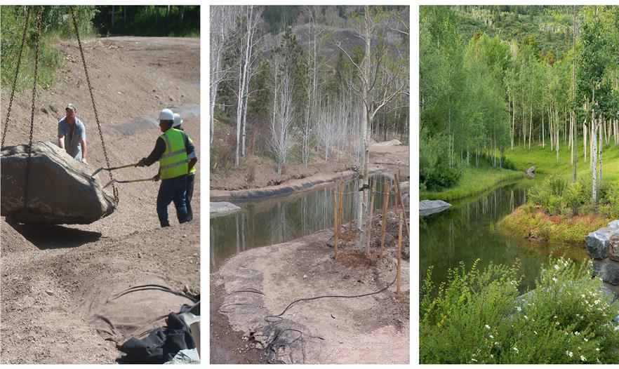 跨學(xué)科團(tuán)隊(duì)巧妙地應(yīng)用生態(tài)原則,將月之暗面景觀改造成高性能的山地生態(tài)系統(tǒng),其挑戰(zhàn)是嚴(yán)峻的氣候條件和密集的生長季節(jié)。如今,10個(gè)重新引進(jìn)的植物區(qū)——包括山楊和混合松柏植物、蒿屬植物叢、草甸和濱河景觀——重新連接主要的野生動(dòng)物廊道、改善區(qū)域流域質(zhì)量以及增加休閑娛樂機(jī)會(huì)。