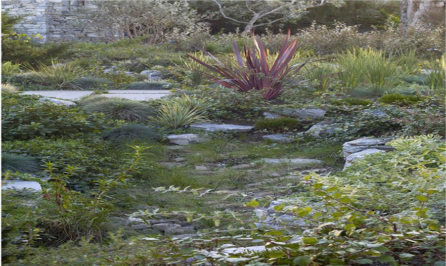 在整個(gè)建造過(guò)程中,設(shè)計(jì)師保護(hù)了本土柏樹,還種植了小柏樹。植被是本土的、用水少,所有的植被都能承受住海岸條件。許多種類都為鵪鶉選擇,當(dāng)作它的食物。植物進(jìn)行最小維護(hù)、季節(jié)性修剪。所有的區(qū)域被覆蓋保留營(yíng)養(yǎng)和水。由于鋪裝區(qū)較小、中間交叉有植被區(qū),減少了花園中的雨水徑流,增加了地下水補(bǔ)給。