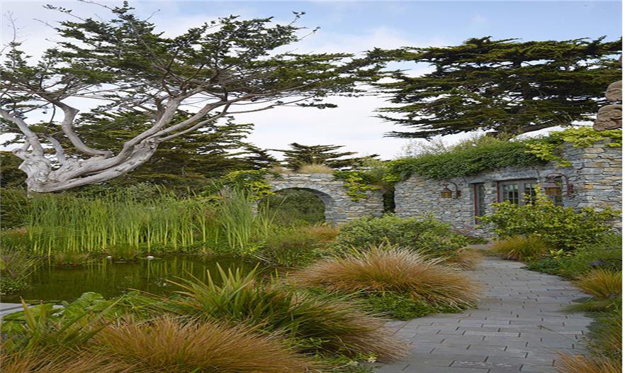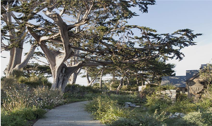 這是一個(gè)海岸區(qū),遭受鹽風(fēng)和濃濃、縹緲的霧氣的侵?jǐn)_。這個(gè)0.3公頃(四分之三英畝)的區(qū)域接近水平,沙地土壤,每年平均只有48厘米(19英寸)的降水。水管理是該項(xiàng)目設(shè)計(jì)中不可或缺的一部分。該區(qū)域最突出的自然特征是歷史性的蒙特利柏樹,環(huán)繞在周邊。