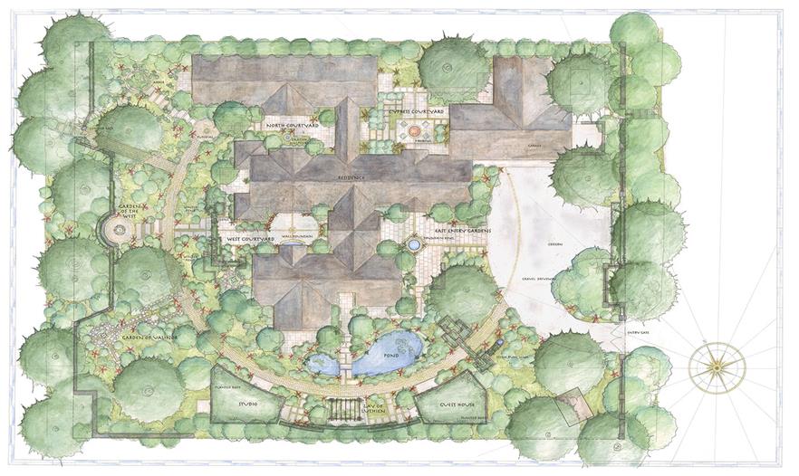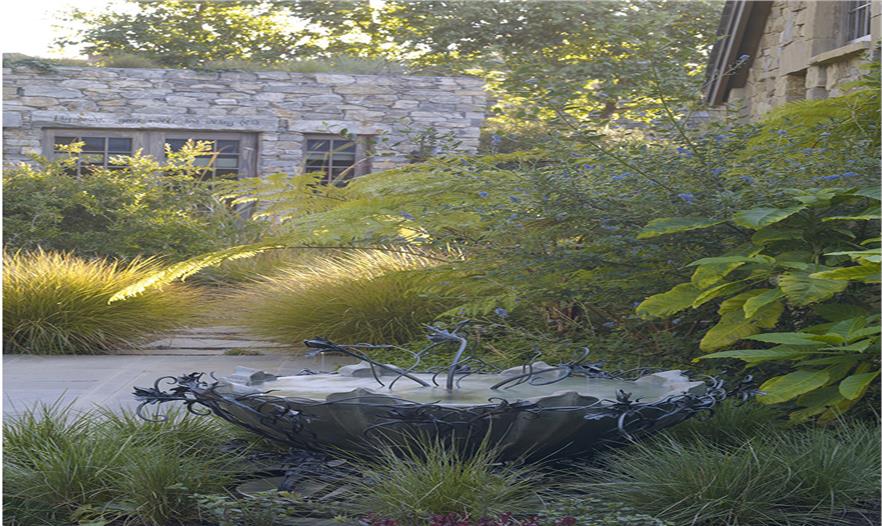 該花園的特色是強(qiáng)大的集水系統(tǒng)、植被覆蓋的屋頂和凱蘭崔爾之鏡。本土植被和鵪鶉棲息地位于神靈腳下。滿溢的冬池中還有被毀的墻壁。
