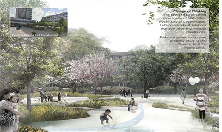 4. 設(shè)計和資格:辨識熱點,將戰(zhàn)略規(guī)劃轉(zhuǎn)移到人類尺度體驗,作為其他城市如何減輕暴雨和周期性降雨影響的模型?!氨┯杲鉀Q工具包”已經(jīng)開發(fā)成一系列普遍適用、多功能、靈活的元素