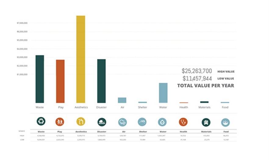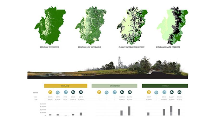 ROSS團(tuán)隊(duì)及其合作人定義了開放空間能夠產(chǎn)生的5個(gè)區(qū)域效益:生物多樣性保護(hù);氣候變化;社會公正;健康;經(jīng)濟(jì)活力。我們召開了專家小組發(fā)展“綠色”論文,證明開放空間在解決這些地區(qū)挑戰(zhàn)的作用,并公布到網(wǎng)上。該團(tuán)隊(duì)鑒定了16類的“開放空間”服務(wù),源自傳統(tǒng)生態(tài)系統(tǒng)服務(wù)標(biāo)準(zhǔn)到提供一個(gè)評估格式,更好地整合社會效益和文化效益。在這個(gè)框架下,員工與經(jīng)濟(jì)學(xué)家量化了4個(gè)縣現(xiàn)有開放空間的經(jīng)濟(jì)價(jià)值。該模型表明開放空間的經(jīng)濟(jì)效益值每年在110 - 250億美元之間,相當(dāng)于約8250億美元的資產(chǎn)。該團(tuán)隊(duì)和合伙人創(chuàng)造了一個(gè)互動性GIS網(wǎng)絡(luò)工具原型,模擬和傳達(dá)該區(qū)域景觀帶來的開放空間服務(wù)。其全套工具還在進(jìn)行中,預(yù)計(jì)秋天會應(yīng)用,引導(dǎo)開放空間保護(hù)和情境增強(qiáng)以及決策。