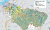 ROSS團(tuán)隊(duì)將從水域策略、GIS數(shù)據(jù)、專家以及提倡者參與以及開放空間價(jià)值測量得出的結(jié)果應(yīng)用到最關(guān)鍵的景觀中,保護(hù)、修復(fù)和提供4縣區(qū)域的公共可達(dá)性。最初的區(qū)域空間構(gòu)思辨識出具有目標(biāo)、優(yōu)先發(fā)展的行動區(qū)域,解決城市和鄉(xiāng)村的農(nóng)業(yè)用地和森林;加強(qiáng)道路連接性;增加休閑和社區(qū)開放空間;棲息地保護(hù)和恢復(fù);減少洪水危害和雨水影響。通過使用數(shù)字立交橋軟件,我們將相互關(guān)聯(lián)的三維視頻虛擬展示連接空間重的要性,展現(xiàn)初步區(qū)域空間策略的主要元素。