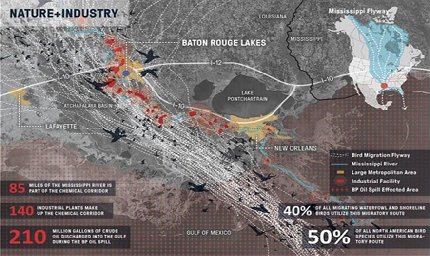 巴吞魯日河流項目認(rèn)識到了危機中的機遇。因為其是路易斯安那州省會城市的焦點,設(shè)計師采用健全的生態(tài)修復(fù)方法治理毫無生氣的河流系統(tǒng),同時也將該城市與其生態(tài)和文化遺址連接起來。巴吞魯日河流項目不再是“癌巷”,有依靠最棒的管理實踐提高該城市形象的潛力。