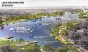 平衡60萬立方米的湖泊挖掘工程。因為要建造一系列的階段性圍壩,這些湖泊將被挖掘成傳統(tǒng)的1.8米(6英尺)深的水池,還帶有2.4-3米(8-10英尺)的容器。挖掘的材料將被用于建造邊緣沿線的濕地長凳,修復(fù)破壞的坡度,建造和擴大濱河公園空間。