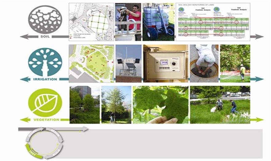 適應(yīng)性管理規(guī)劃:該大學(xué)支持適應(yīng)性管理規(guī)劃,目的在于改善該區(qū)域一直以來的雨水管理問題。該規(guī)劃包括堆肥茶應(yīng)用;灌溉監(jiān)測(cè);化冰鹽的選擇使用;土壤和植物監(jiān)測(cè);以及土壤和草皮修復(fù)。