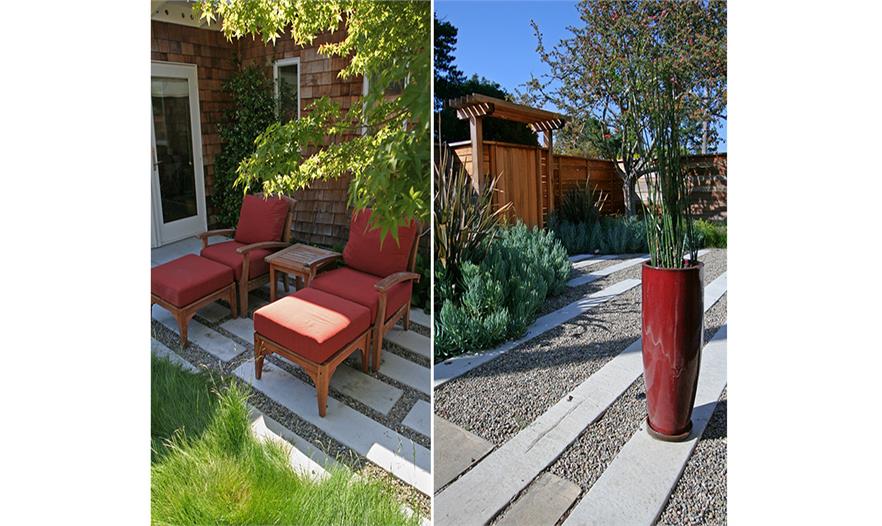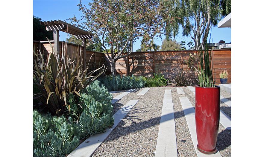對于喜歡花園但沒有時間享受的夫婦來說,這個中世紀現(xiàn)代住宅的復興設計為他們提供了幾個戶外休閑空間。狹窄的混凝土線條貫穿整個花園。前院由新的木制柵欄環(huán)繞,從大門進入后就是一個大型庭院空間,種有低維護的草本植物和多肉植物。側(cè)院是一個小型庭院,建有景觀墻,以展示在巴厘島旅行期間獲得的瓷磚。后院是一個小型的菜園和一個不用修剪的草坪,并不需要太多的維護,以自己本有的狀態(tài)生長。