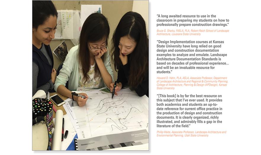 這本書將學(xué)術(shù)和景觀設(shè)計行業(yè)的結(jié)合很具創(chuàng)新性。到目前為止,6所大學(xué)把這個材料用作教學(xué)工具,而且同行評審這個文檔。學(xué)生需要理解景觀施工和文檔課程,但與設(shè)計事務(wù)所教導(dǎo)的程序聯(lián)系甚少。如今的實踐要求實踐者了解和應(yīng)用景觀建筑設(shè)計程序、文檔實踐和相關(guān)圖形需求之間的關(guān)系。