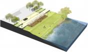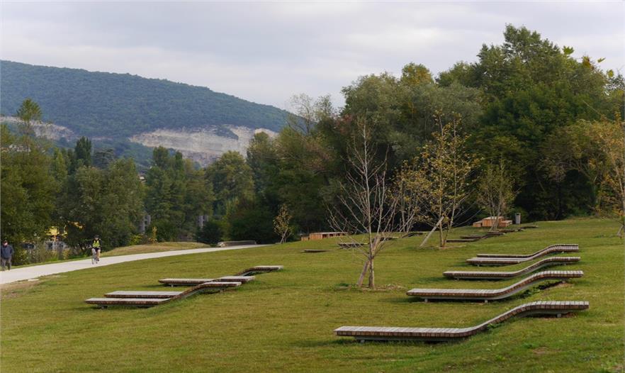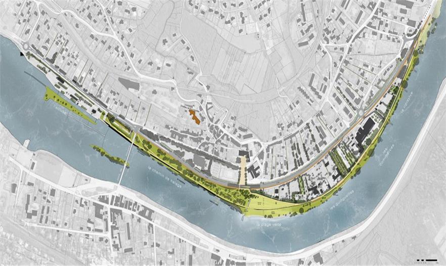 索恩河岸公園項(xiàng)目將沿著索恩河畔延伸,連接起小鎮(zhèn)Rochetaillée與其鄰側(cè)的大城市里昂。項(xiàng)目被劃分為若干個(gè)段落,由In situ所負(fù)責(zé)的區(qū)域得天獨(dú)厚,不僅河岸地勢開闊,同時(shí)也有著河灣地段所獨(dú)有的多變朝向,與其下游單調(diào)的南北系列截然不同。