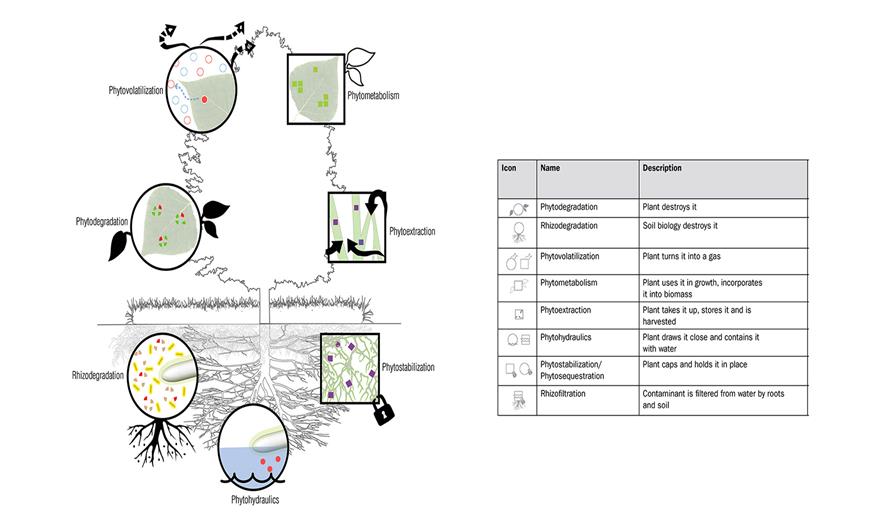 《Phyto》不僅對(duì)景觀設(shè)計(jì)師,對(duì)工程師和科學(xué)家同樣是很棒的資源。隨著植物技術(shù)方法的發(fā)展,生物科學(xué)化程序也在努力發(fā)展中,同時(shí)該領(lǐng)域認(rèn)識(shí)到由于缺乏知識(shí)和資源,沒(méi)有考慮輔助效益的估算?!禤hyto》將社會(huì)科學(xué)和自然科學(xué)引入到普通的聚集空間,提供急需的討論以及以植物為基礎(chǔ)的技術(shù)的可視化和跨文化展現(xiàn),融入到我們的城市空間,為公共健康和生活質(zhì)量服務(wù)?!芴K里科技大學(xué)的Joel G. Burken
