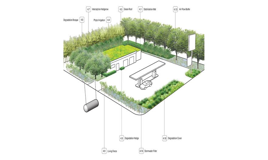 但是,除了利用植物技術(shù)方法作為區(qū)域修復(fù)的工具外,《PHYTO》認(rèn)為植物技術(shù)方法還是設(shè)計(jì)完工景觀的一種防護(hù)措施。它讓植物技術(shù)方法的應(yīng)用遠(yuǎn)離法律和法規(guī)調(diào)控,管理園藝、設(shè)計(jì)和規(guī)劃相關(guān)問(wèn)題的修復(fù)活動(dòng)。植物技術(shù)方法的設(shè)計(jì)和安裝基于預(yù)期的污染作決定。這本書(shū)是第一本以這個(gè)技術(shù)的空間設(shè)計(jì)、形式、結(jié)構(gòu)和美感為關(guān)注點(diǎn)的書(shū)籍,而不是簡(jiǎn)單的技術(shù)。作者們的意圖是將最新的研究和實(shí)地研究轉(zhuǎn)化成對(duì)設(shè)計(jì)實(shí)踐家解決區(qū)域污染問(wèn)題有用的工具。