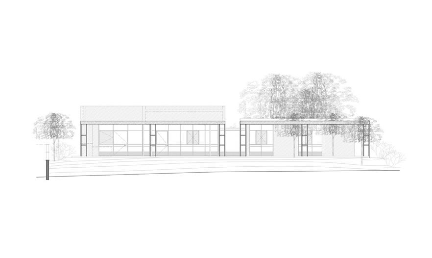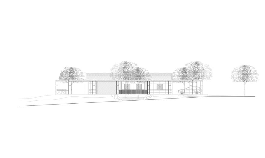 來自建筑事務(wù)所的描述。該住宅為一對六十歲的老夫婦設(shè)計。在建造之前,建筑場地主要為平地和周邊的自然森林。接受項目之后,在第一次會議上,我給客戶提出了兩個基本選擇方案,最后決定以場地上的樹木決定房屋的規(guī)劃。最初規(guī)劃包括使廣場與可滲透孔洞縱橫交叉,廣場內(nèi)的劃分效果類似住宅的封閉和開放空間。覆蓋和未覆蓋區(qū)域取決于樹木的位置。這就像在樹干之間鋪陳出去的樹枝,希望盡可能地保護(hù)它們。