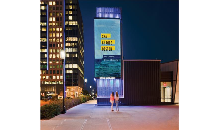 2014年春,海平面變化研究以展覽的方式在波士頓區(qū)域大廳(District Hall)呈現(xiàn)。區(qū)域大廳最近由波士頓市建造,成為波士頓創(chuàng)新區(qū)的中心,公共工作區(qū)24小時開放。區(qū)域大廳的任務(放置居民主導的創(chuàng)新)以及接近波士頓海港的位置讓它成為最佳展示地點和合作伙伴。