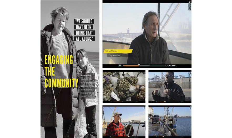 “社區(qū)參與”強調(diào)了解該展覽的合作和學術程序,包括波士頓海港居民的肖像和2013實習研討會和2013波士頓建筑學院天然系統(tǒng)工作室的預測設計。