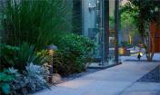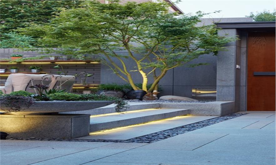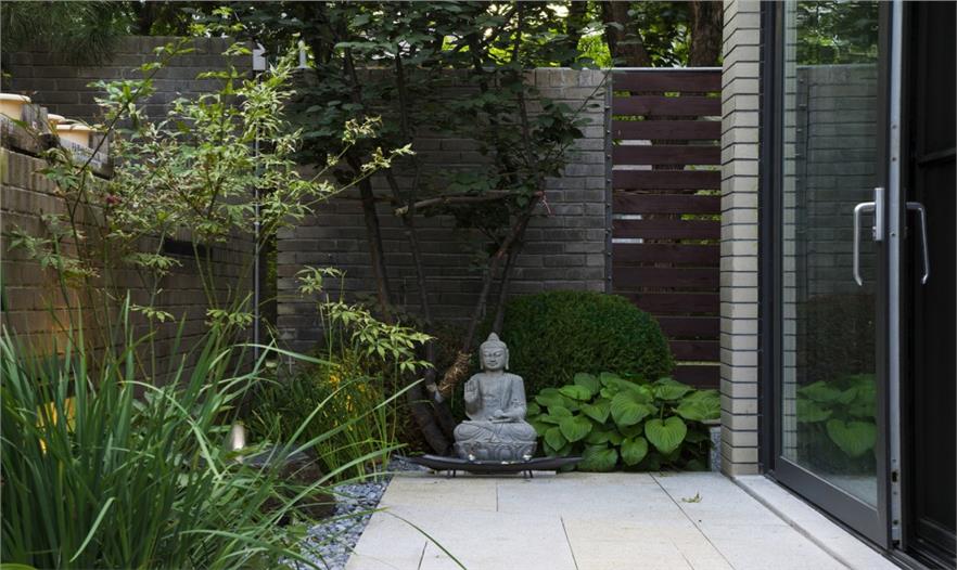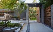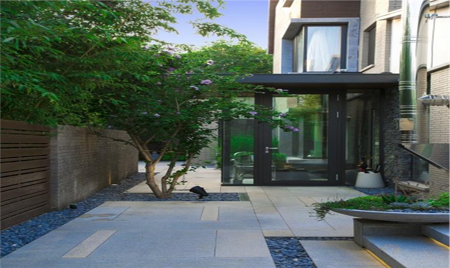 進入大門是直通入戶的園路,交通盡量便捷,抬高的道路兩側是礫石排水,甲南園林希望通過抬高的路面使入戶即使在下雨天也是干凈清爽的,便捷卻不直白。