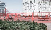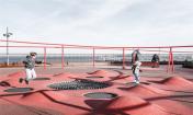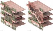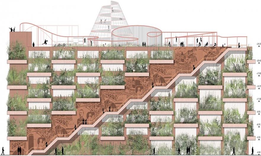這次的競賽方案基于傳統(tǒng)立體停車場結(jié)構(gòu),被綠意覆蓋的建筑立面極富吸引力,而位于屋頂?shù)墓部臻g進(jìn)一步激活了建筑。