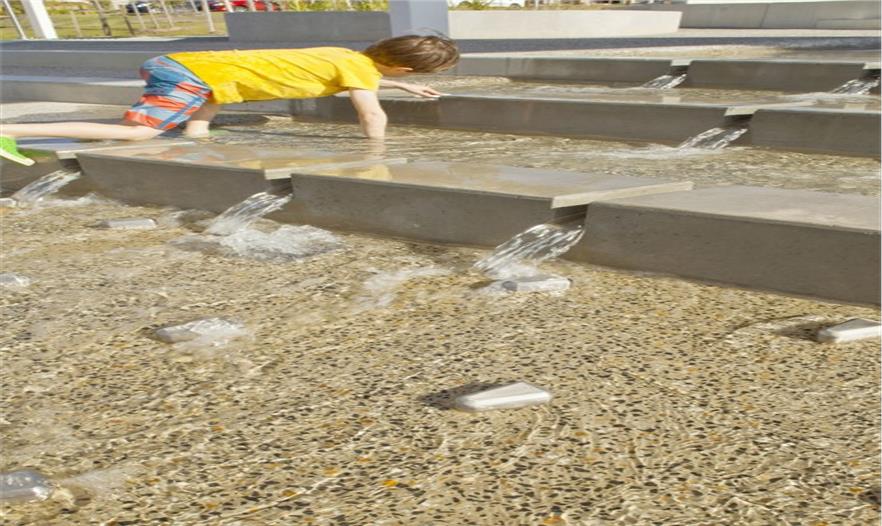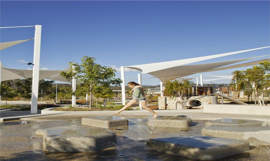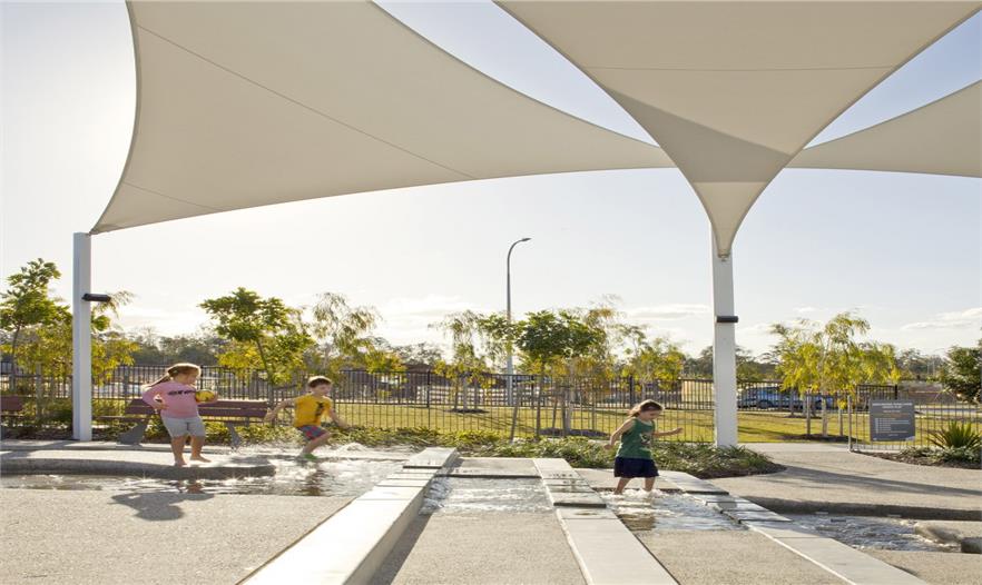 Lendlease希望在此區(qū)域建為全新社區(qū)時,游樂場地能作為一個主要場所營造元素,吸引人們前來。客戶希望游樂空間內(nèi)的元素具有包容性,能夠吸引各年齡段兒童,并且設(shè)計引人注目的水景游樂區(qū)。因此,澳派景觀設(shè)計工作室ASPECT Studios為兒童創(chuàng)造出豐富的游樂體驗,鍛煉他們的想象力、鍛煉體質(zhì)并增強(qiáng)活力、感受周邊事物及享受自由玩耍的快樂,并在相鄰區(qū)域設(shè)計了寬廣的草坪,以便家人進(jìn)行野餐或共同玩游戲。