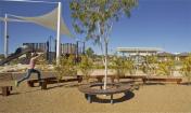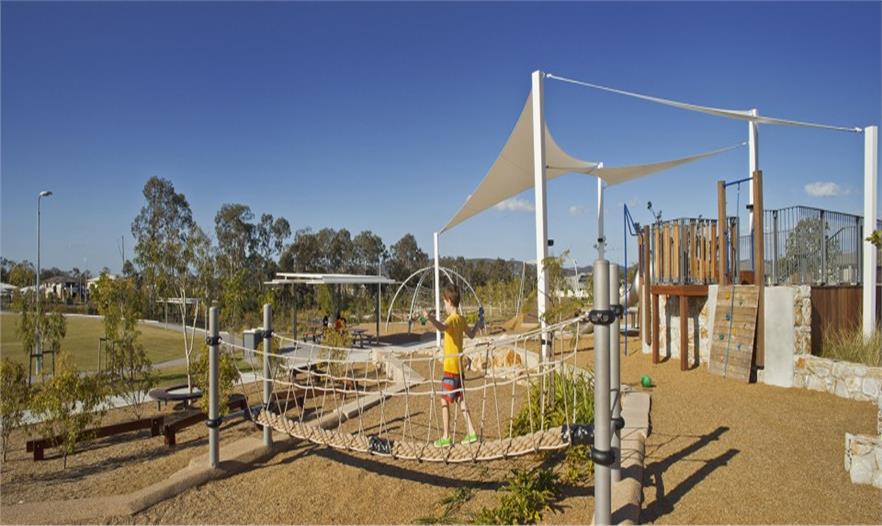 澳派景觀設(shè)計工作室ASPECT Studios受Lendlease委托,為達(dá)令敦園區(qū)的游樂場地提供景觀設(shè)計服務(wù)。此游樂場地位于新建亞拉比巴社區(qū)的中心地帶,位于布里斯班東南方向和紹斯波特西北方向,分別相距40公里和30公里。亞拉比巴的規(guī)劃目標(biāo)是建造一個配套設(shè)施齊全的成熟社區(qū),結(jié)合住宅區(qū)、一系列完善的商業(yè)和辦公區(qū)、教育設(shè)施(包括小學(xué)和中學(xué))、小鎮(zhèn)及街道中心、休閑娛樂及社區(qū)服務(wù),并通過覆蓋廣泛的人車共享通道將各區(qū)域相連,提供便利的交通。達(dá)令敦園區(qū)位于社區(qū)的核心位置,而游樂場地更是核心中的核心,為家人和兒童提供了一起玩耍、一起溝通交流的場所。