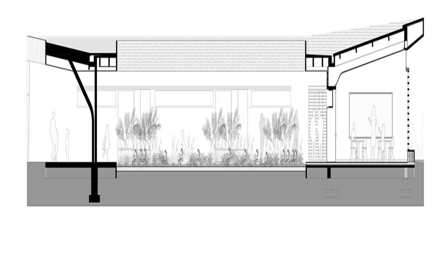 首先,項(xiàng)目的空間結(jié)構(gòu)由兩部分組成。其一是空的“露臺(tái)”,它作為一個(gè)中心區(qū)域,融合了精神修養(yǎng)和本質(zhì);第二個(gè)是“門檻”,作為陰影和入口。這兩種元素都與該地區(qū)的傳統(tǒng)建筑相關(guān)。