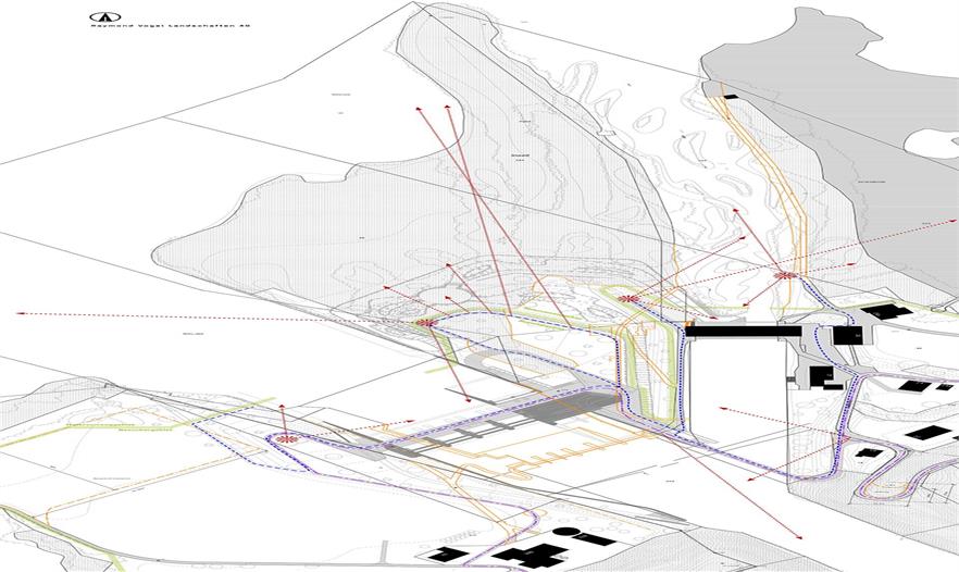 這是瑞士當(dāng)代設(shè)計(jì)中將位于自然之中的城市基礎(chǔ)設(shè)施改造為休閑公園的首次嘗試,也成為了在人口密集區(qū)域、國家打造景觀設(shè)施的一個(gè)典范。