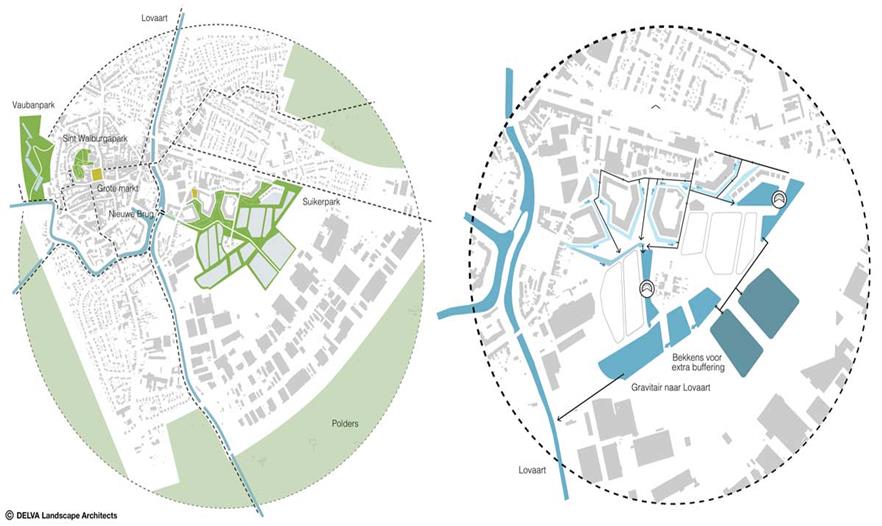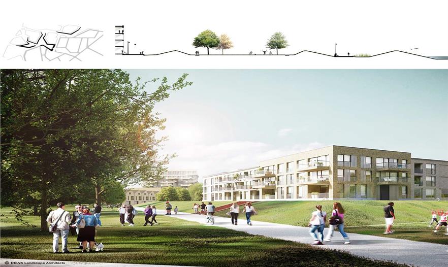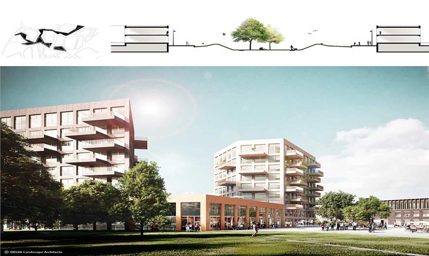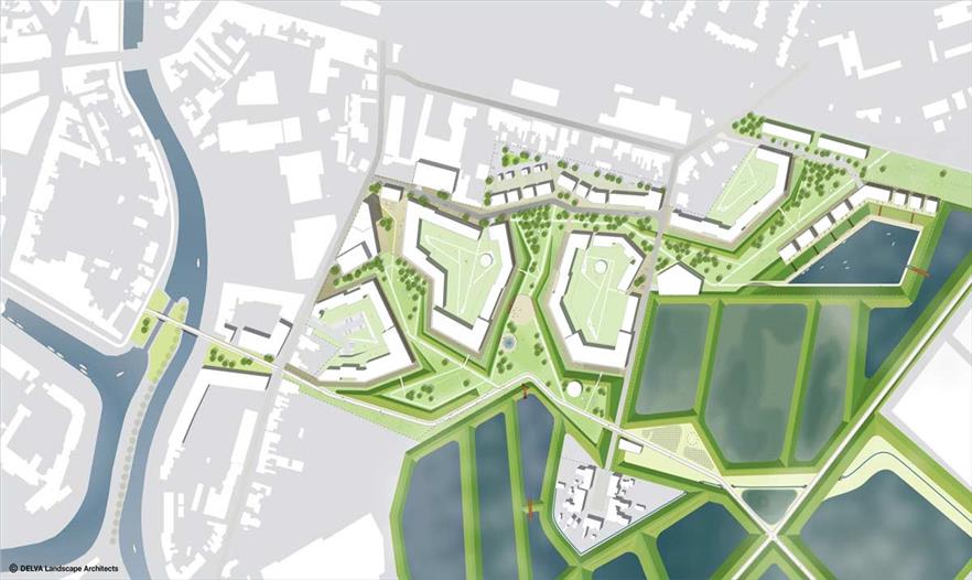 DELVA Landscape Architects事務(wù)所與ION領(lǐng)導(dǎo)的跨學(xué)科團隊合作為比利時Veurne制糖廠再發(fā)展規(guī)劃一個動態(tài)主體方案。這個大尺度再發(fā)展方案的名字將是“糖公園”,指的是將這個單一功能的工廠(直到2005年)改造成一個多功能區(qū)域,設(shè)有生活區(qū)、工作區(qū)、小型企業(yè)、綠色廣場和一個大型自然公園。 該區(qū)域?qū)⒊蔀橐粋€全新的城市社區(qū),位于這個歷史城市和許多水體周邊的堤壩之間。