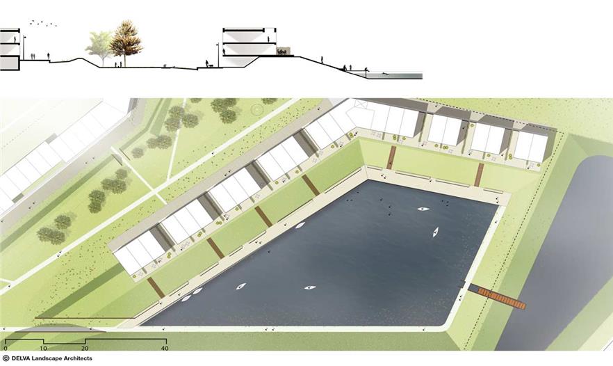 堤壩系統(tǒng)面對著住宅區(qū),建造出城市和景觀之間的風(fēng)景線。