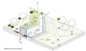 通過渠道的有意識設(shè)置,使建造地下停車場成為可能,不需要接觸太深的地下層。結(jié)果就是一個繁茂的庭院,從帶有私人花園的一個區(qū)域平緩地過渡到公共綠色空間中。