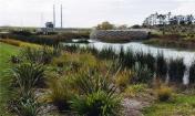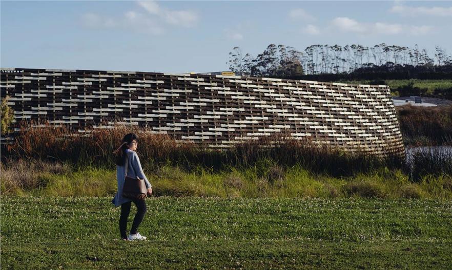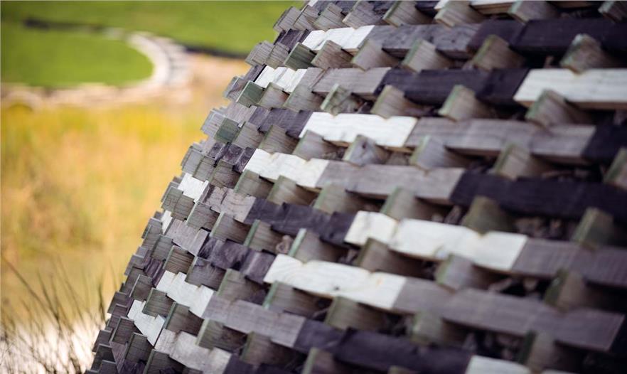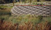 該項(xiàng)目最突出的是文化方面,尤其是曲折的“木籃”,融入到3個(gè)水塘濕地的邊緣中。這些功能性雕塑抽象地代指亞麻編織的籃子和鰻籠。雖然這些形式復(fù)雜、訂制的,事實(shí)上它們是由標(biāo)準(zhǔn)的木籠式防護(hù)系統(tǒng)建造而成:一個(gè)現(xiàn)成的系統(tǒng),適應(yīng)曲線型傳統(tǒng)編織結(jié)構(gòu)的表現(xiàn)方式。