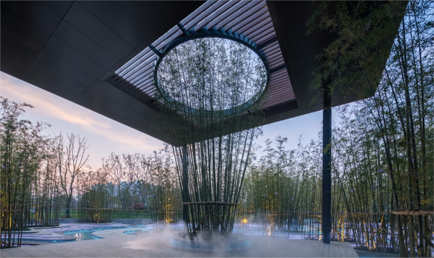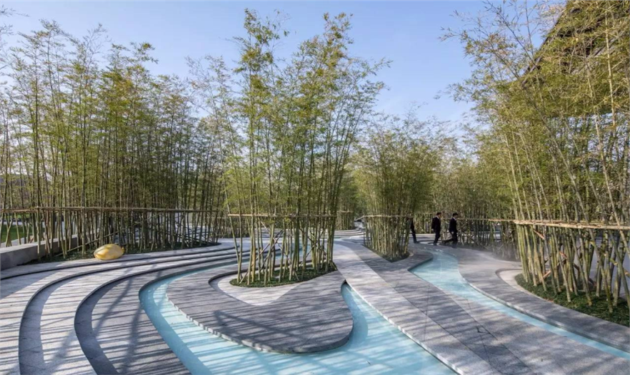 精挑細(xì)選的毛竹,與稀有金山石相互映襯,與場(chǎng)地氣質(zhì)融為一體,溫潤(rùn)有聲,鏘鏘有力。