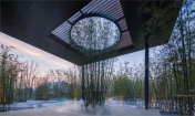 使用連續(xù)、放射的線條,橫向延伸、縱向緊致,光和影交織而入,構(gòu)建排竹云海景致。