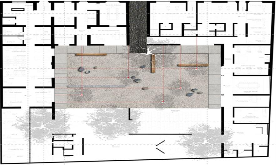 景觀設(shè)計創(chuàng)造了一個忠于時間的圖騰,它既代表現(xiàn)在,也會在未來成為過去歷史的一部分。時間,將在老白蠟樹周圍新種下的白蠟樹身上得到體現(xiàn)。它們被精心布置,使得人們可以從建筑內(nèi)部和場地之外見證它們的生長。