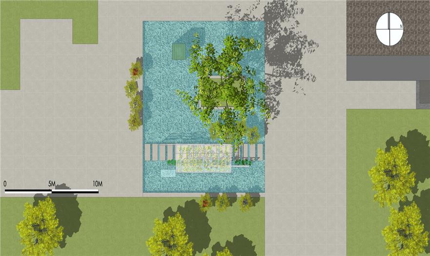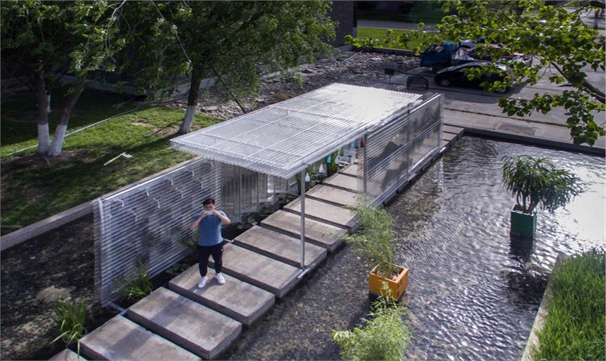 零亭的鋼結(jié)構(gòu)循環(huán)利用了原有的鋼材,水中的樹池也是用廢棄電腦機(jī)箱制作的。