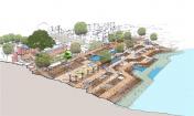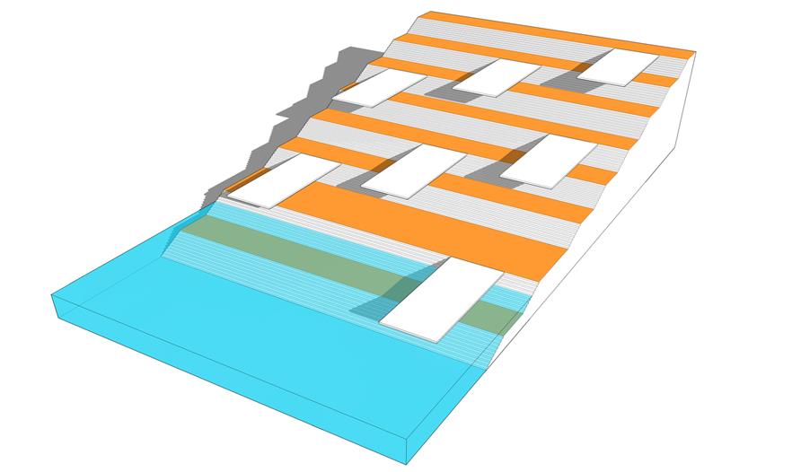 這個公司轉(zhuǎn)向研究本土來尋求治理河岸的辦法。通向河流的石階穩(wěn)定了河流邊緣、提供了人與河流接觸的界面,是一個自然的解決方案。Morphogenesis 對石階的設(shè)計結(jié)合了幾個平臺的使用,來容納各種功能:延伸的平臺用于所有水位上的運輸,較小的用于日常儀式,較大的作為慶典的舞臺。
