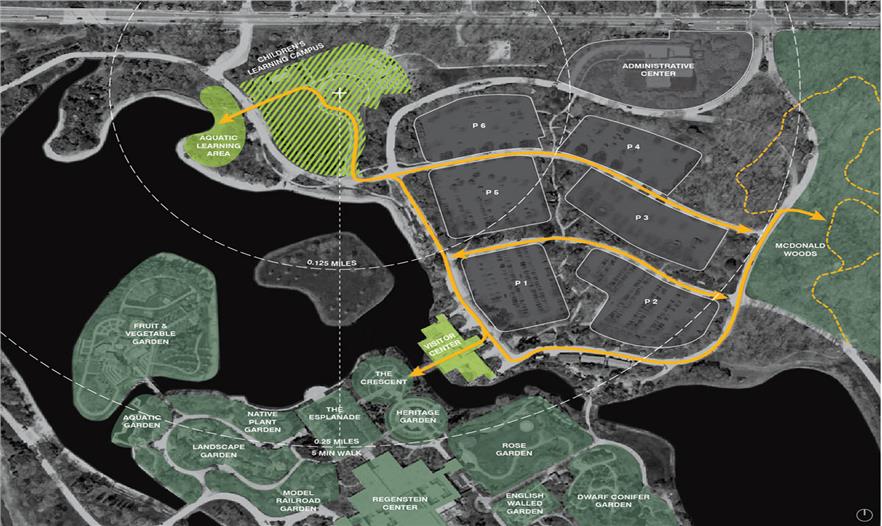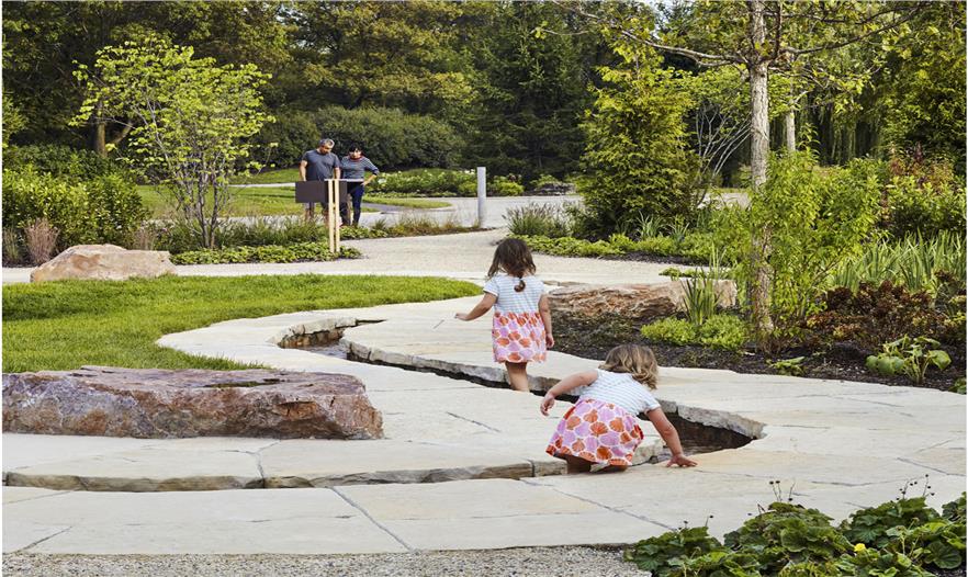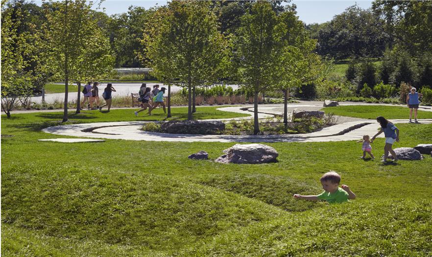 園區(qū)與兩個(gè)現(xiàn)有設(shè)施相連,以創(chuàng)造更大的學(xué)習(xí)環(huán)境。東北方向的Grunsfeld生長(zhǎng)花園是一處草本和烹飪花園,而西邊的Kleinman家庭灣是針對(duì)家庭和兒童的水上學(xué)習(xí)中心。這三個(gè)特色鮮明的學(xué)習(xí)區(qū)從觸覺、嗅覺、感受以及視覺美感等多方面,極大地豐富了芝加哥植物園的教育計(jì)劃。