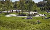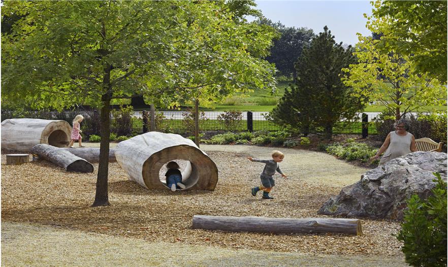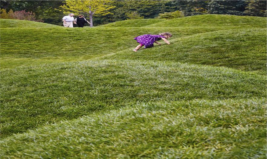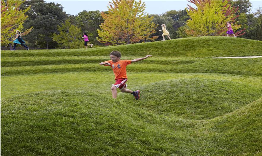 作為教育性景觀,公園用充滿吸引力的元素,將游戲和直覺體驗(yàn)式學(xué)習(xí)自然地連接起來。大型草坪區(qū)域由高原丘陵開始,并通向附近湖泊中的低地噴泉。富有雕塑感的地貌定義了中央空間的特征,保證所有年齡和能力的兒童都能夠安全游戲和探索。起伏的山丘形成一個(gè)綠色露天劇場(chǎng),可以舉辦聚會(huì)、晚會(huì)等活動(dòng)。自然游樂園和多感官探索花園讓游客深入了解生態(tài)系統(tǒng)和地區(qū)植物類型。其他提供生態(tài)探索的場(chǎng)所還包括蜂巢和蝴蝶展覽館、作為入口的紫荊樹林、側(cè)柏冥想室和鵝耳櫪環(huán)形教室。種植上選用了多種楓樹、白楊和多年生植物。