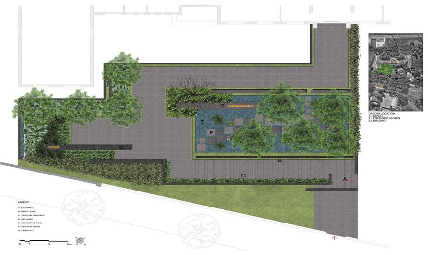This garden is a contemporary space in sync with Brazilian tropical heritage. It harmonizes a floating garden amidst water, lush greenery with bold, clean constructed elements.