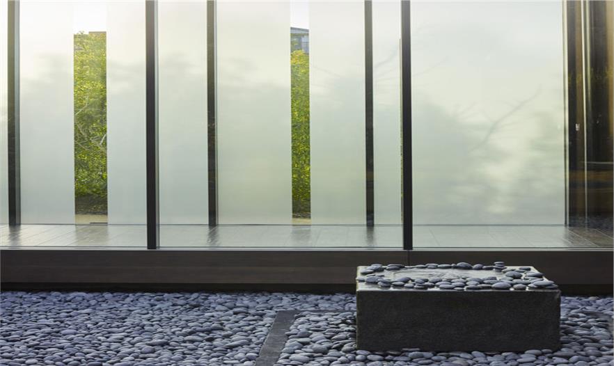 該項目使用創(chuàng)新材料深化自然體驗,呼應(yīng)了項目整體設(shè)計理念。夯土墻、銹蝕鋼板、石塊、水、礫石和砂土等材料營造出豐富的環(huán)境觸感,強化了對瞬間的感知,引導(dǎo)人們關(guān)注腳下石頭的敲擊聲,微風(fēng)拂過水面,以及平面上的光影流動。