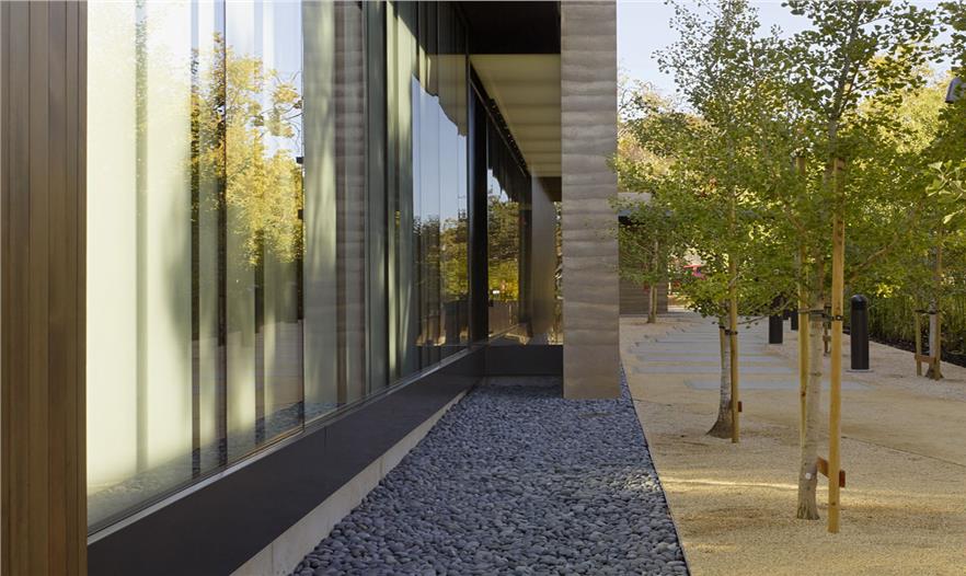 設(shè)計團隊所設(shè)想的簡潔構(gòu)造需要周密的細節(jié)把控和高水平的工藝來實現(xiàn),而緊張的時間安排和預(yù)算更增加了困難。為了利用有限資源打造出博物館級質(zhì)量的空間,景觀設(shè)計師采用創(chuàng)新策略來保持設(shè)計的完整性。其中包括從學(xué)?!肮菆觥保ㄒ惶幈A粲羞^去建筑項目殘留石塊的場地)中尋找雕塑素材,要求鏡面池一次澆注成型(這需要對細節(jié)的嚴密把控和監(jiān)管才能實現(xiàn)質(zhì)量管控)等。此外,由于沒有噴泉顧問,景觀設(shè)計師與承包方合作,設(shè)計建造了水池的機械系統(tǒng)。