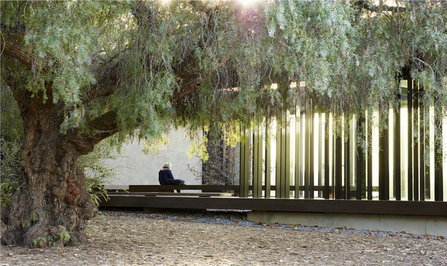 Windhover冥想中心以藝術(shù)家Nathan Oliveira的一系列作品命名。在繁忙的斯坦福大學(xué)校園中,它同時發(fā)揮著藝術(shù)畫廊、精神圣地和冥想花園的功能。該中心借助Oliveira的藝術(shù)作品驅(qū)動自我內(nèi)在更新,為學(xué)生、教師和工作人員提供了解壓和重塑自我的場所。設(shè)計綜合利用了毗鄰橡樹林地的獨特環(huán)境,使訪客在體驗Oliveira繪畫作品的同時,感受富有啟迪性的自然環(huán)境。建筑與景觀的融合體現(xiàn)在設(shè)計的方方面面,從精心安排的入口空間,到室內(nèi)外空間視覺與物質(zhì)的相互滲透,再到建筑材料和光影之間的呼應(yīng)。Windhover代表了機構(gòu)設(shè)計的新類型,為觀賞藝術(shù)和培養(yǎng)個人幸福感提供了一個郁郁蔥蔥的綠色圣殿。