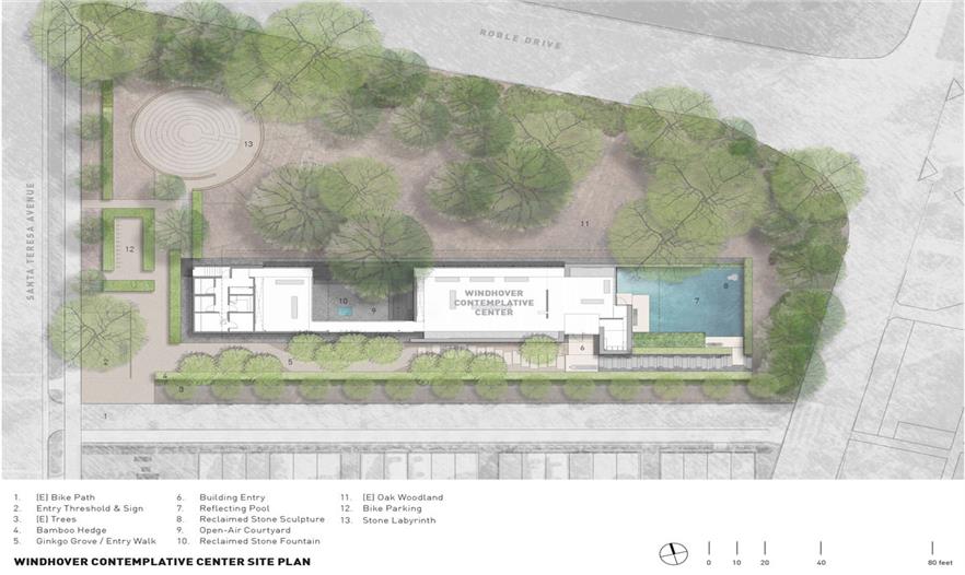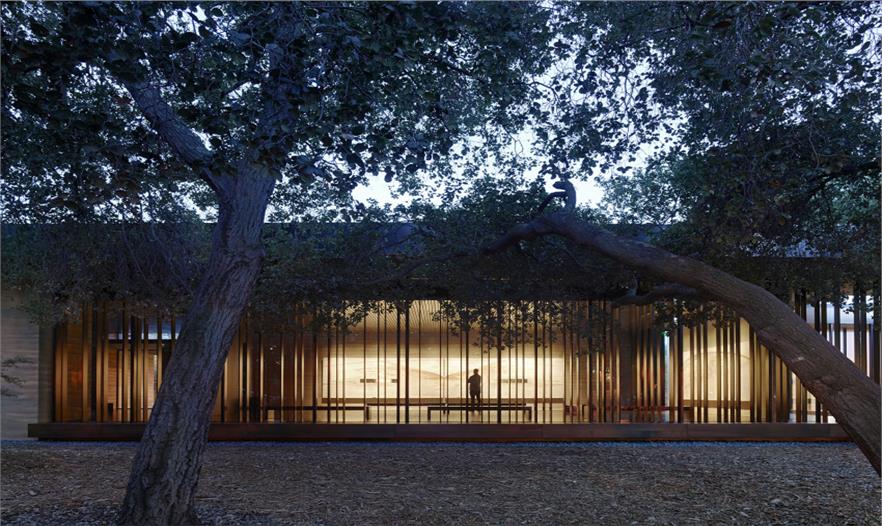 Windhover冥想中心位于橡樹林內(nèi),過去曾是停車場。中心由4,000平方英尺的藝術(shù)畫廊和寧靜的室外空間組成,旨在展示Nathan Oliveira藝術(shù)作品,驅(qū)動自我重塑。當(dāng)兼任藝術(shù)家與斯坦福大學(xué)教授的Oliveira于2011年去世時,冥想中心實現(xiàn)了他的夢想,讓那些靈感來自詩歌和斯坦福大學(xué)附近風(fēng)景的作品,得以在一處專注于自然的沉思空間中展示。