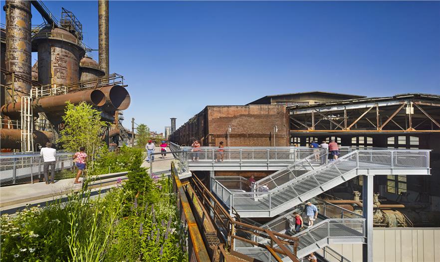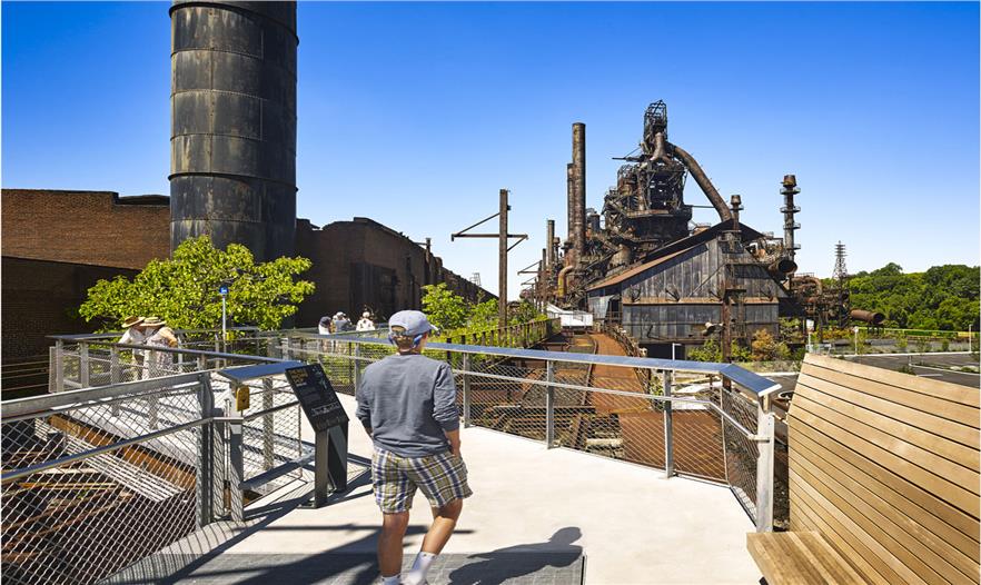Hoover-Mason高架廊道,讓游客沿著曾經(jīng)運(yùn)輸鋼材生產(chǎn)原材料的路線(xiàn),觀(guān)賞園區(qū)的工業(yè)遺產(chǎn);