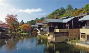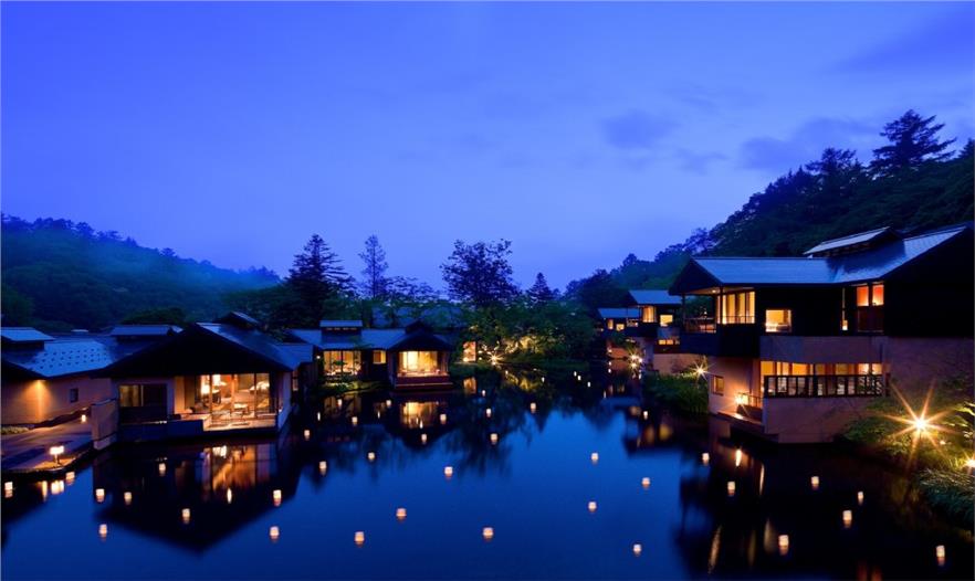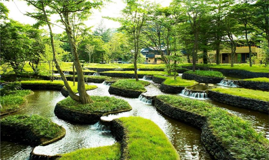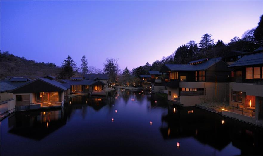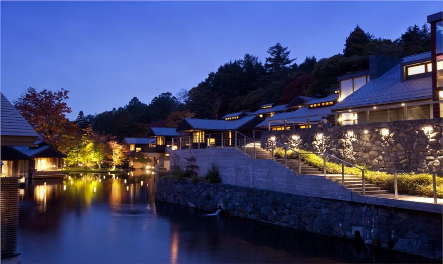 輕井澤虹夕諾雅酒店設(shè)計(jì),是以珍惜日本原有文化特色為主題的一個(gè)山谷里的村落溫泉度假村。這里只有野鳥的鳴叫,森林的呼吸,潺潺的溪流,清澈的風(fēng),傾瀉而下的陽光和溫泉的惠賜,在它們的懷抱中,身心都被融匯到自然中。