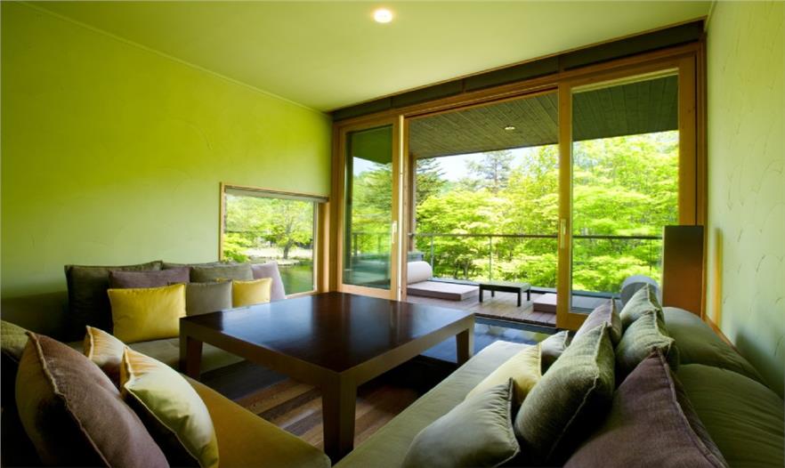 按照地理位置和建造方法的不同,幾乎不存在兩間相同的房間進(jìn)而具備不同的逗留感受。各間客房都配有高天花板和大窗戶,臥室與起居室相互獨(dú)立。浴室內(nèi)有高位窗戶,打開后沐浴可同時(shí)感受自然風(fēng)的愜意。星野溫泉自從1914年開湯以來,被文化界人士和在這片土地里建造別墅的人們愛用。酒店安排了不同個(gè)性的兩處溫泉,寬敞的內(nèi)池與闊展在山麓中的擁有露天浴池的Tombo-no-yu,以及夢(mèng)幻般光線和黑暗空間組合的徹底進(jìn)入冥想境界的Meditationbath,都是百分之百源泉放流的,無疑具有質(zhì)優(yōu)和豐富泉水量的浴池。