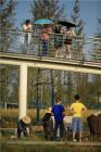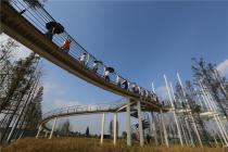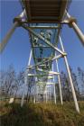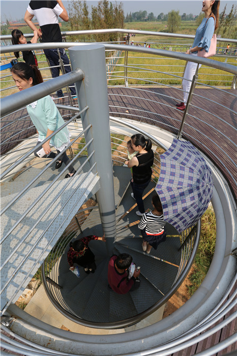 第三,場地內(nèi)設(shè)計了一座架高4米的玻璃廊橋,供游客登高遠(yuǎn)眺,使得公園北部的考古遺址盡收眼底。用玻璃作為橋面材料,可以使陽光穿透,保證其下方的農(nóng)作物有充足的日照。如此,沿橋散步也成為一種奇妙的探險。玻璃廊橋通過四個方向的四個坡道來增強(qiáng)橋身的穩(wěn)定性,并增加了橋與四方田埂的連通性。玻璃廊橋吸引了大量游客,特別是兒童和學(xué)生,使原先單調(diào)乏味的農(nóng)業(yè)景觀變得更令人興奮且富有娛樂性。